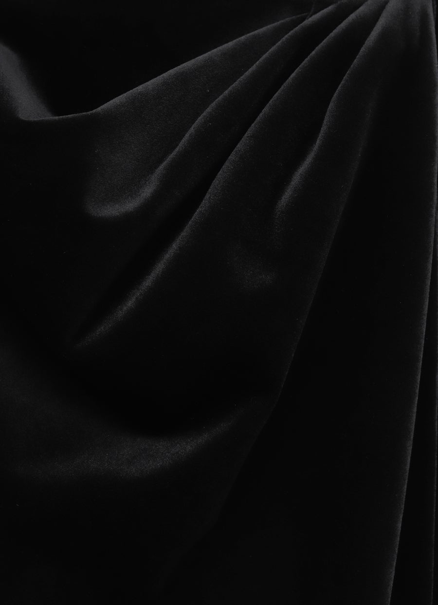 Falda de Balenciaga en terciopelo bielástico negro con talle alto, construcción wrap, cierre de cremallera y hebilla en el lateral, bajo asimétrico y abertura delantera. Largo por encima de tobillo. Hecha en Italia. Talla normal, elige tu talla habitual. Tallaje francés.